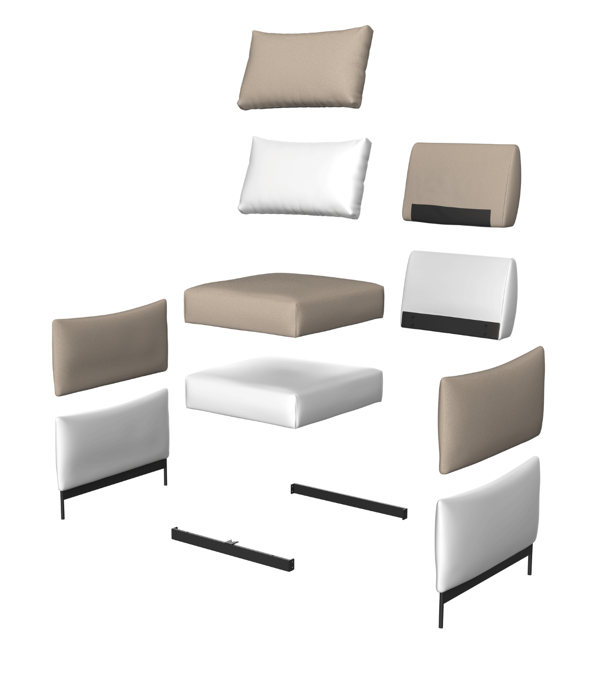 Kayto este concepută ca o canapea de lounge distinctă, cu înălțime mică a scaunului și scaune relativ adânci. Pentru a putea regla confortul șezutului și a-l adapta așa cum vă doriți, vă oferim o varietate de perne pentru a forma suportul preferat.