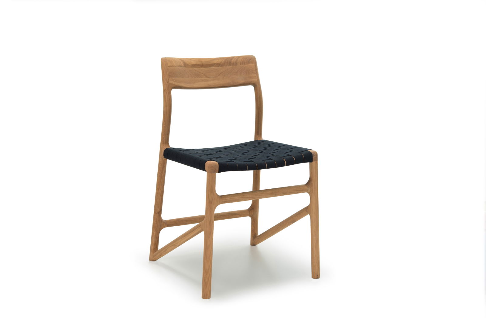 Gazzda Fawn chair with solid oak structure and cotton webbing seat
